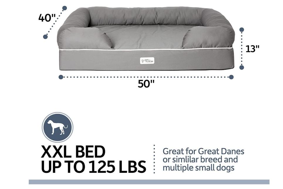 The PetFusion Ultimate Dog Bed is a premium orthopedic bed made with thick memory foam, supportive bolsters, and a fully waterproof interior liner.
